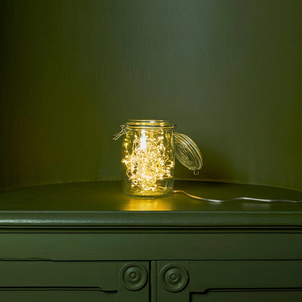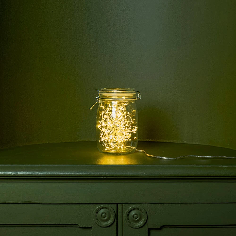 - Bocal en verre contenant une guirlande lumineuse