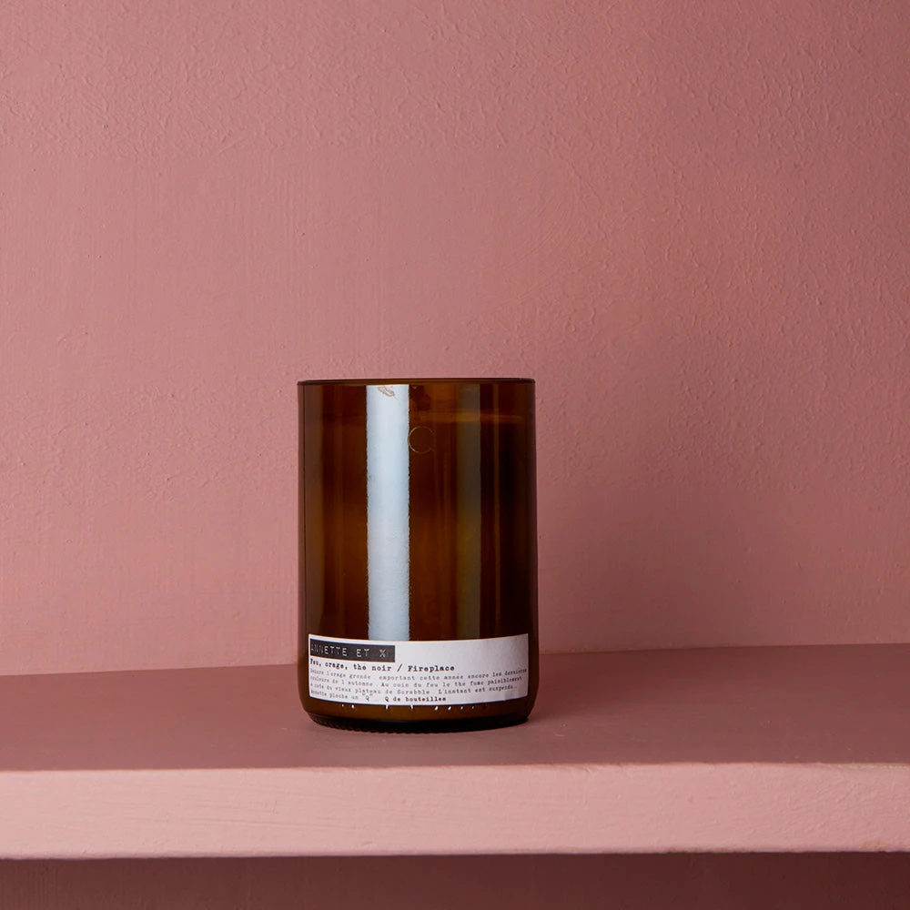 - Bougie senteur feu, orage et thé noir
