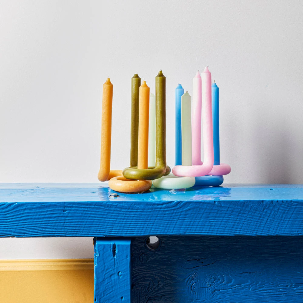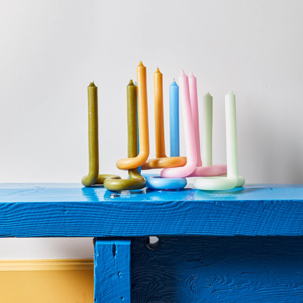 - Les bougies torsadées utilisent la flexibilité de la cire. Les bougies sont généralement droites et ont donc besoin d’une base.