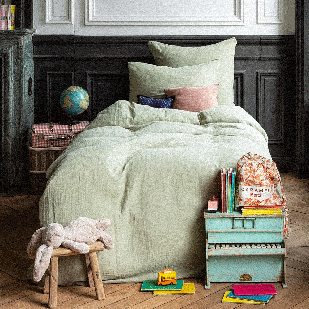 Caramel X Merci – Housse De Couette En Gaze De Coton – Vert 77 Rue De Varenne