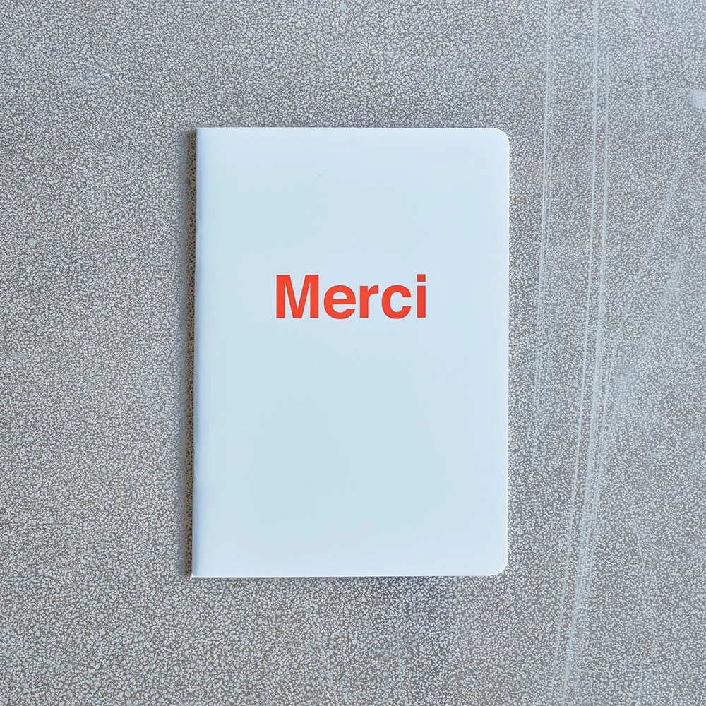 - Merci a imaginé un carnet à son image : pratique, transportable partout, qui va droit à l’essentiel