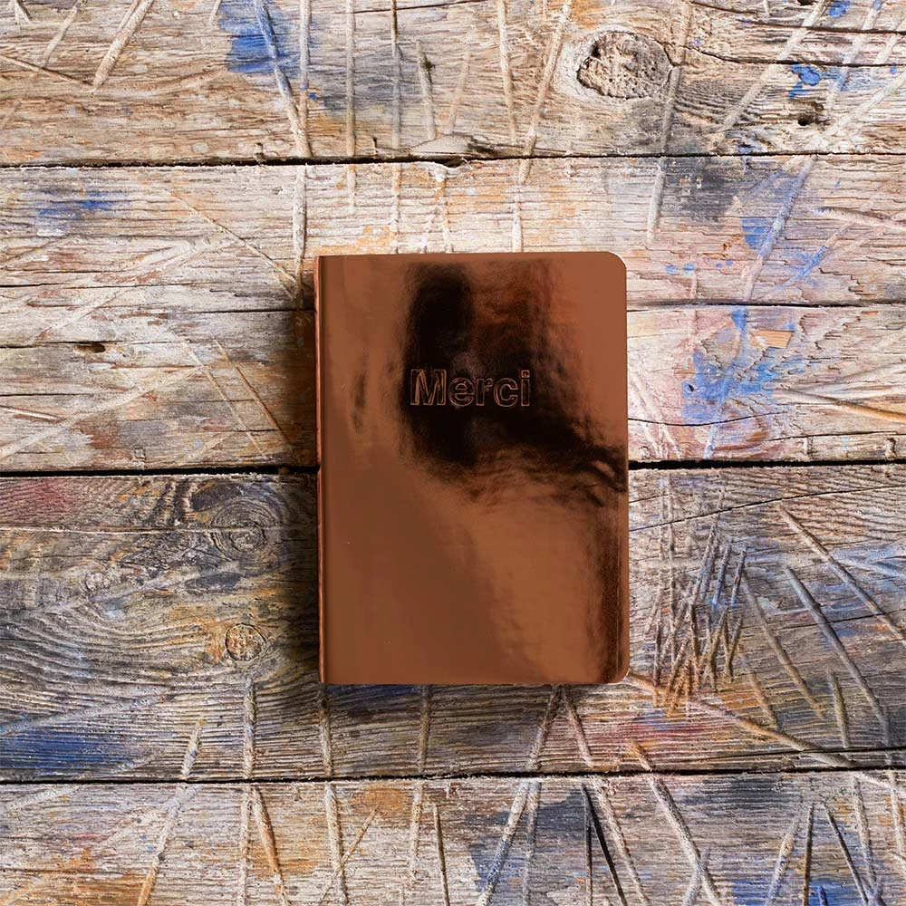 - Merci a imaginé un carnet à son image : pratique, transportable partout, qui va droit à l’essentiel