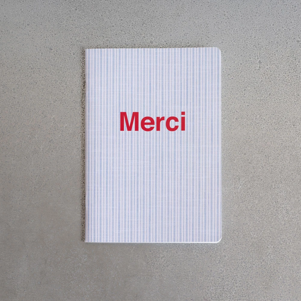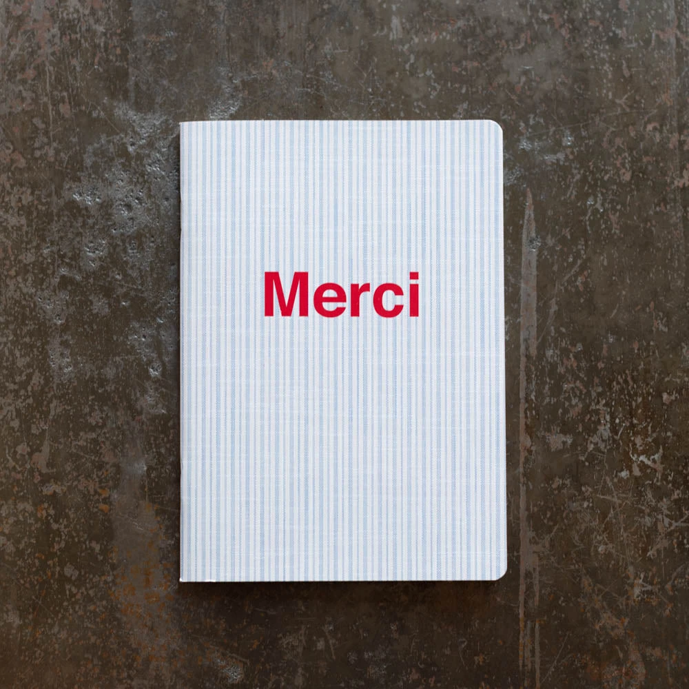 - Merci a imaginé un carnet à son image : pratique, transportable partout, qui va droit à l’essentiel