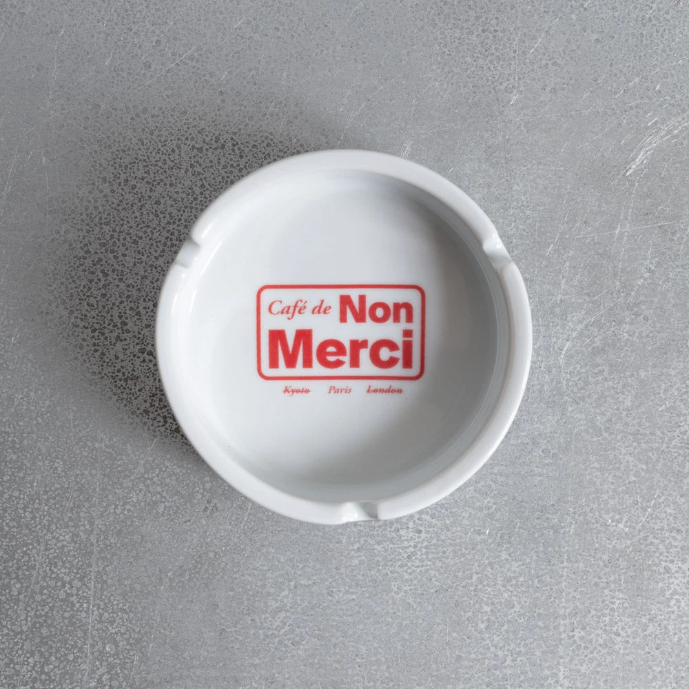 - Cendrier classique de couleur blanche arborant à l’intérieur le logo Non Merci