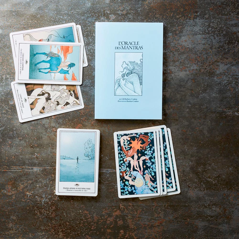 54 cartes illustrées par l’artiste Bastien Coulon, comportant chacune un mantra.