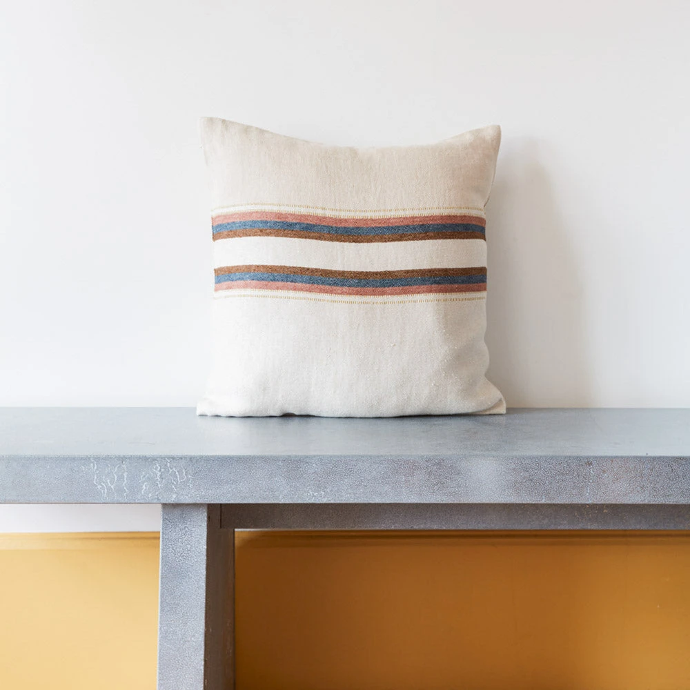 - Coussin belge à rayures Harlan en lin pour sublimer votre canapé ou votre chambre à coucher, que vous pourrez assembler avec d’autres coussins ou foutas et accorder selon vos envies