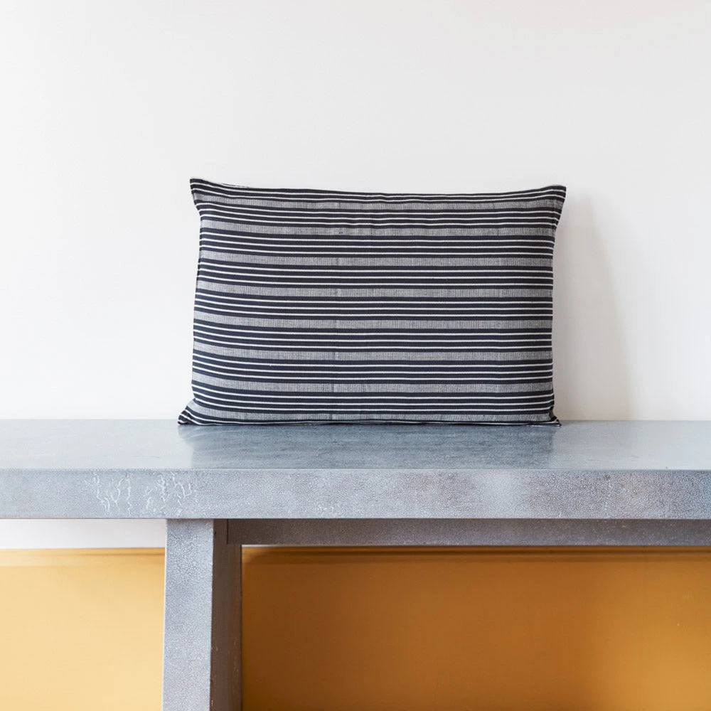 - Coussin en coton duo de couleurs et motifs, noir et bleu