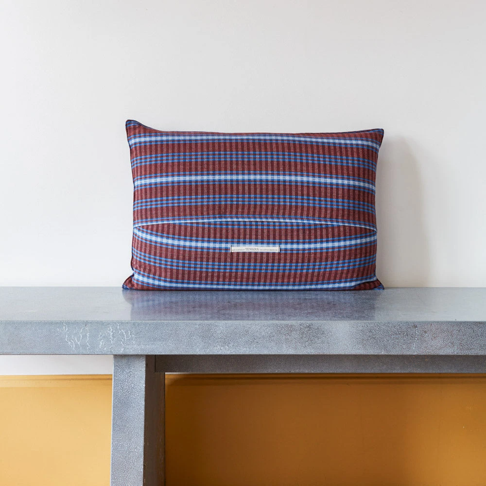 Coussin Tartan – Bordeaux & Bleu