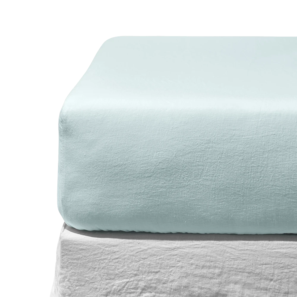 Drap-housse En Lin Lavé – Bleu Antiparos