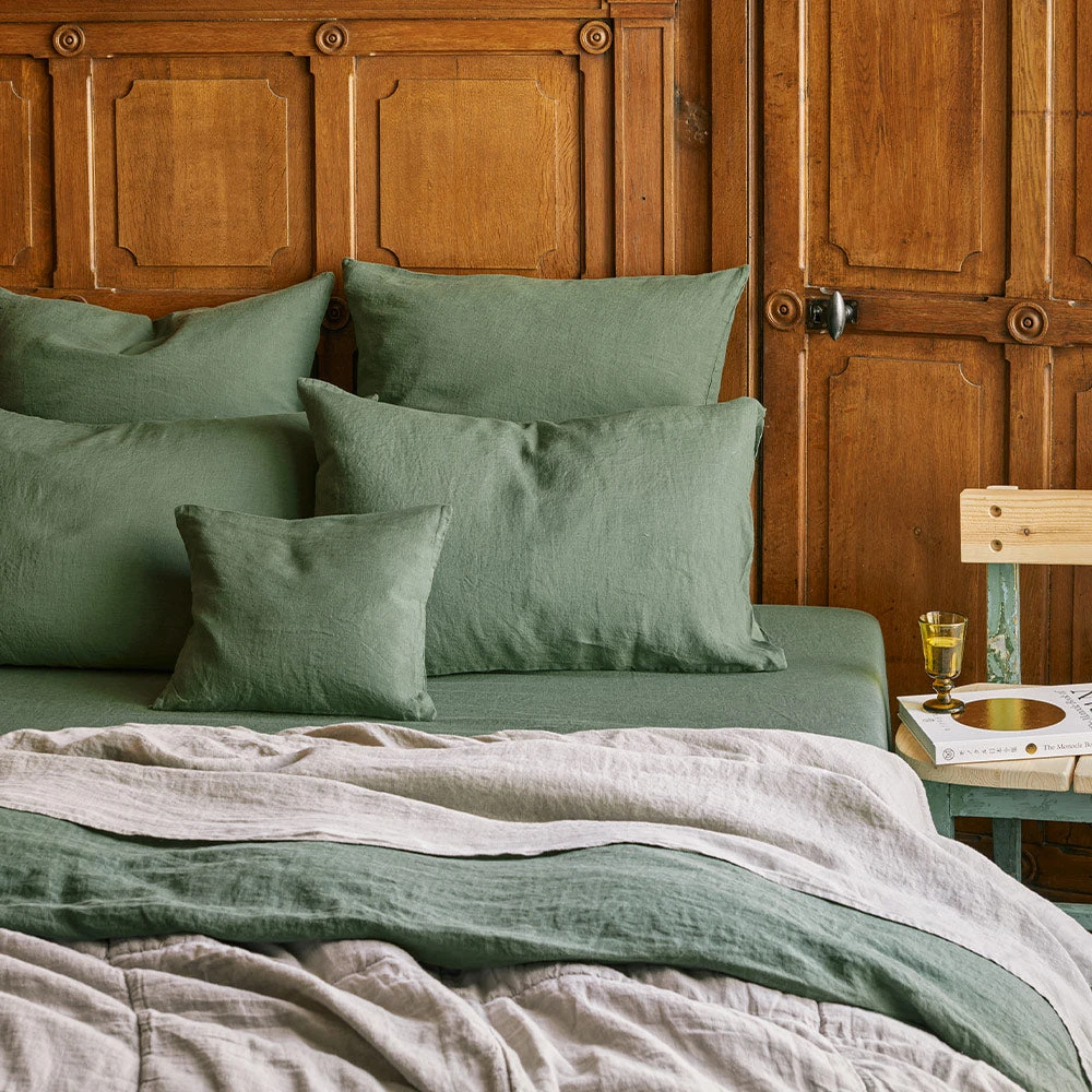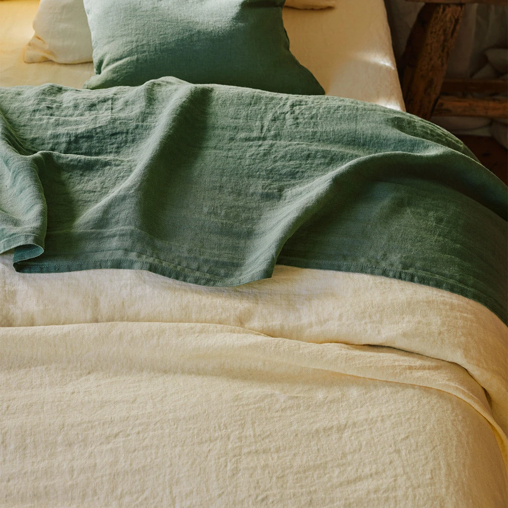 Drap Plat En Lin Lavé – Vert D’Anduze