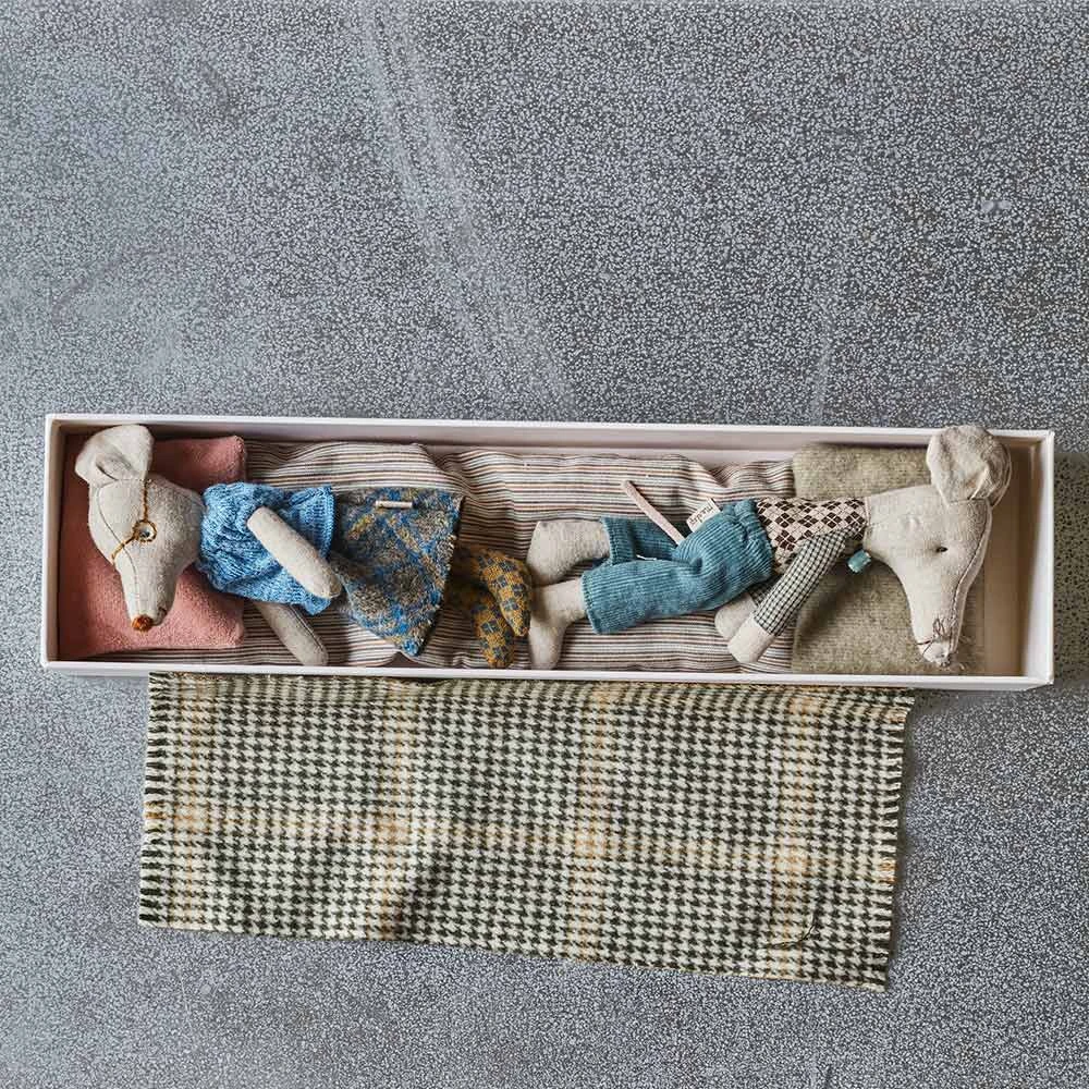 - Grands parents souris en coton et leur boîte de rangement, à câliner sans retenue