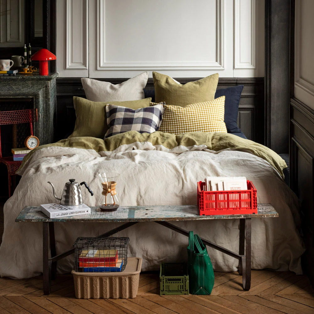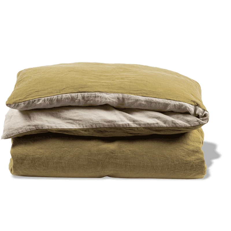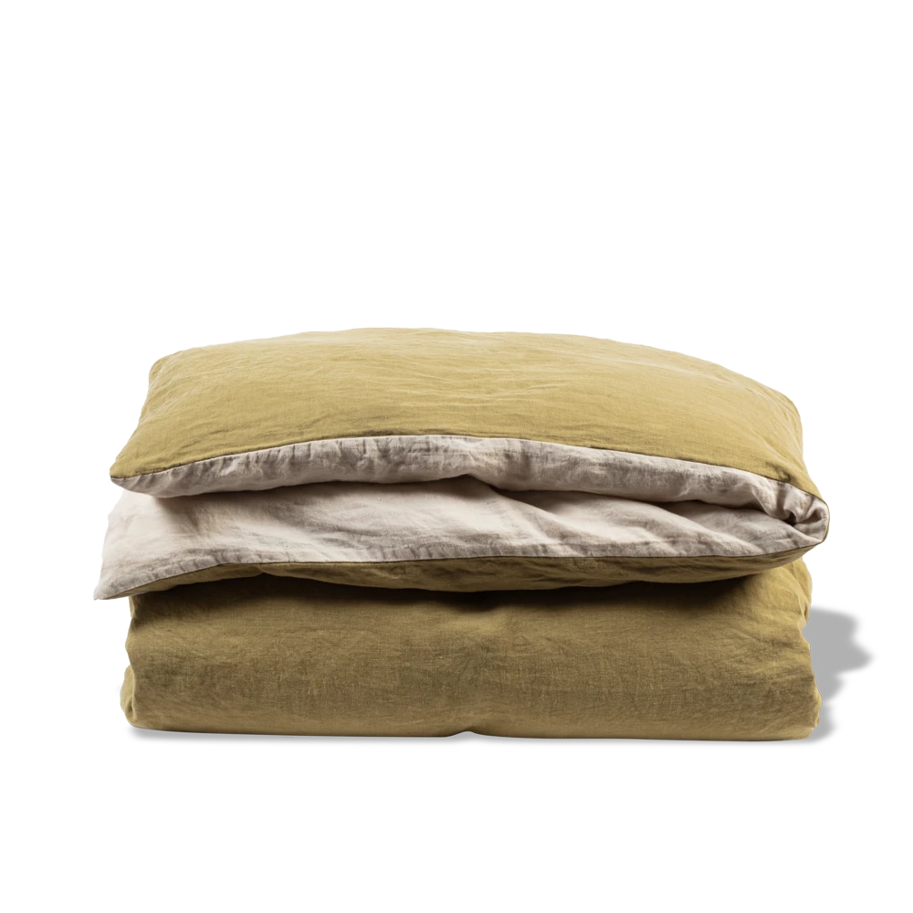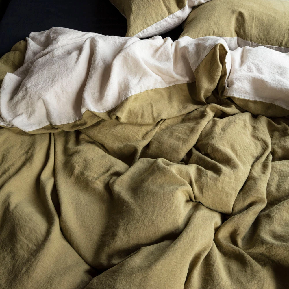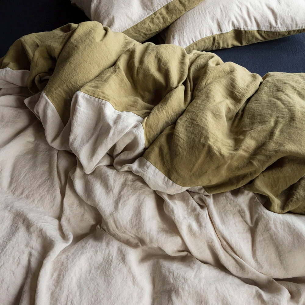 Housse De Couette En Lin Lavé – Bicolore Pierre & Vert