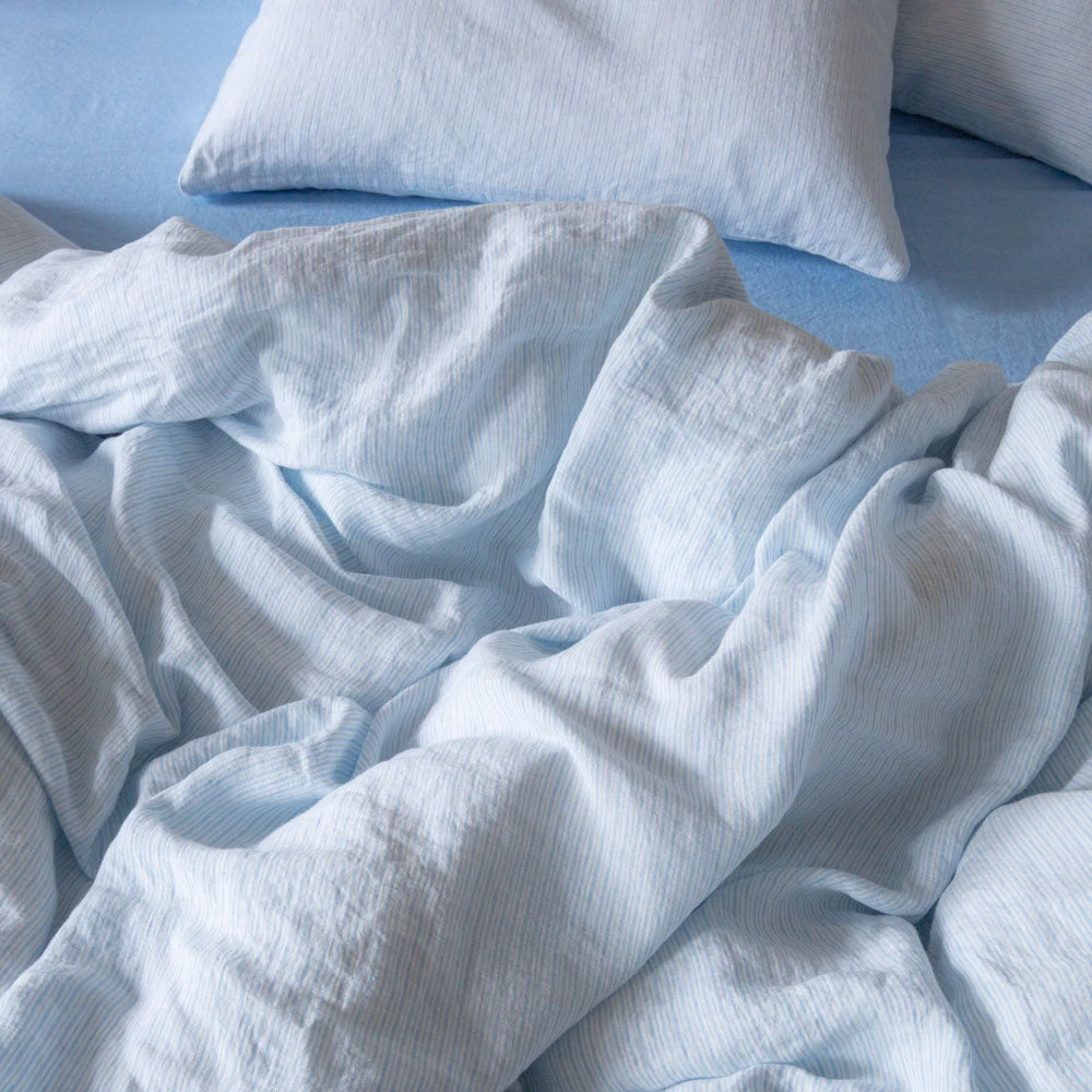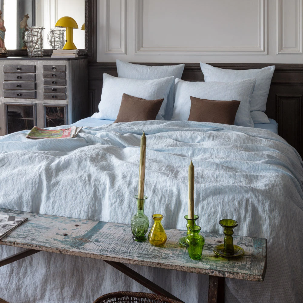 - Housse de couette en lin lavé ornée de rayures chemise