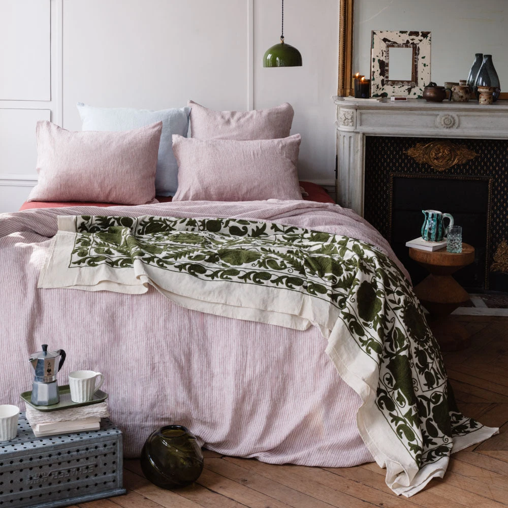 - Housse de couette en lin lavé ornée de rayures chemise
