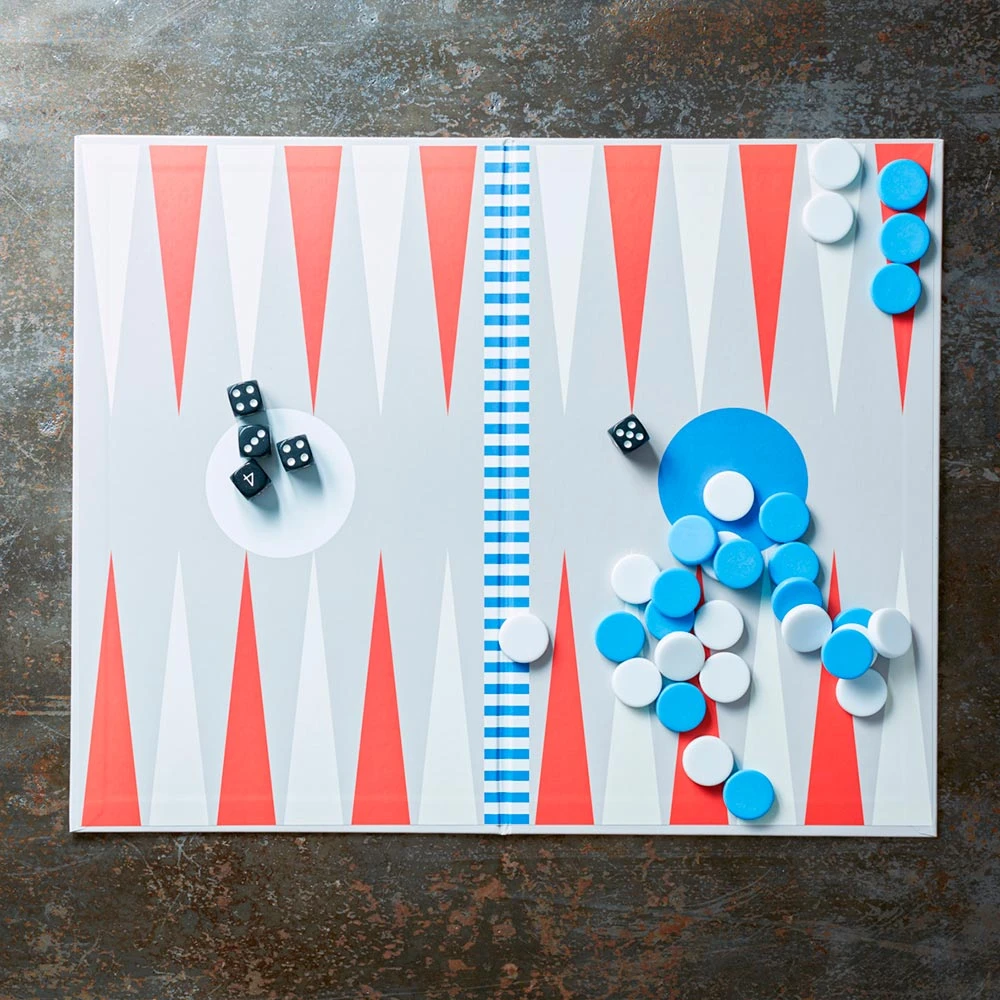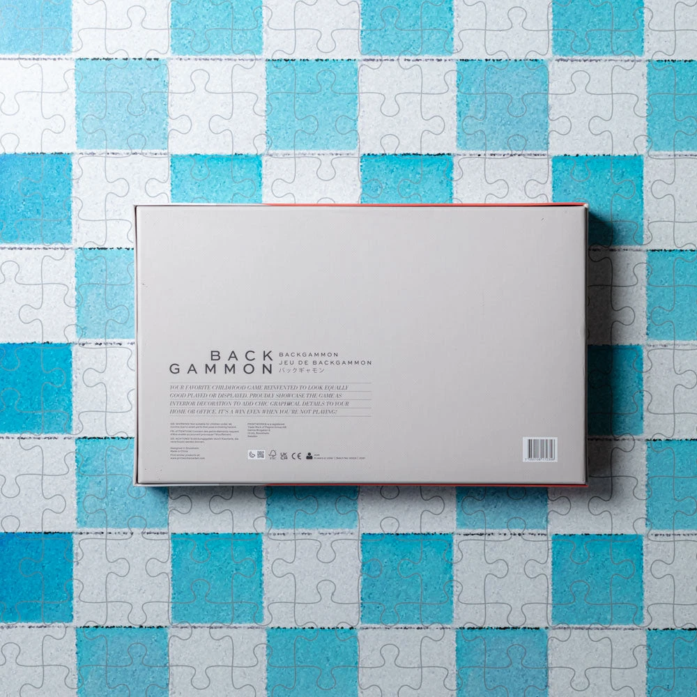 - Jeu de Backgammon design et graphique. Le jeu est livré avec un carton pliable et des pièces de jeu en plastiques