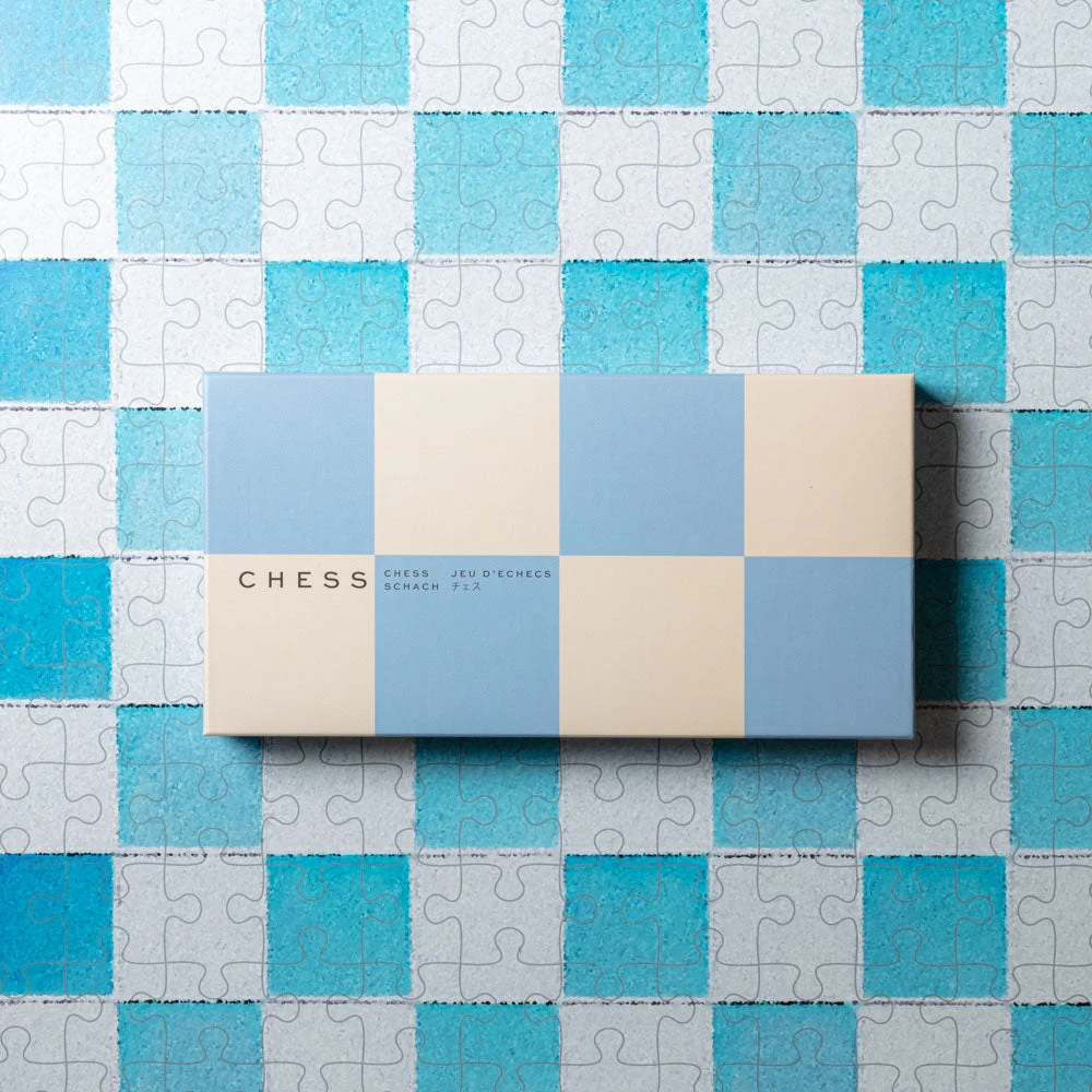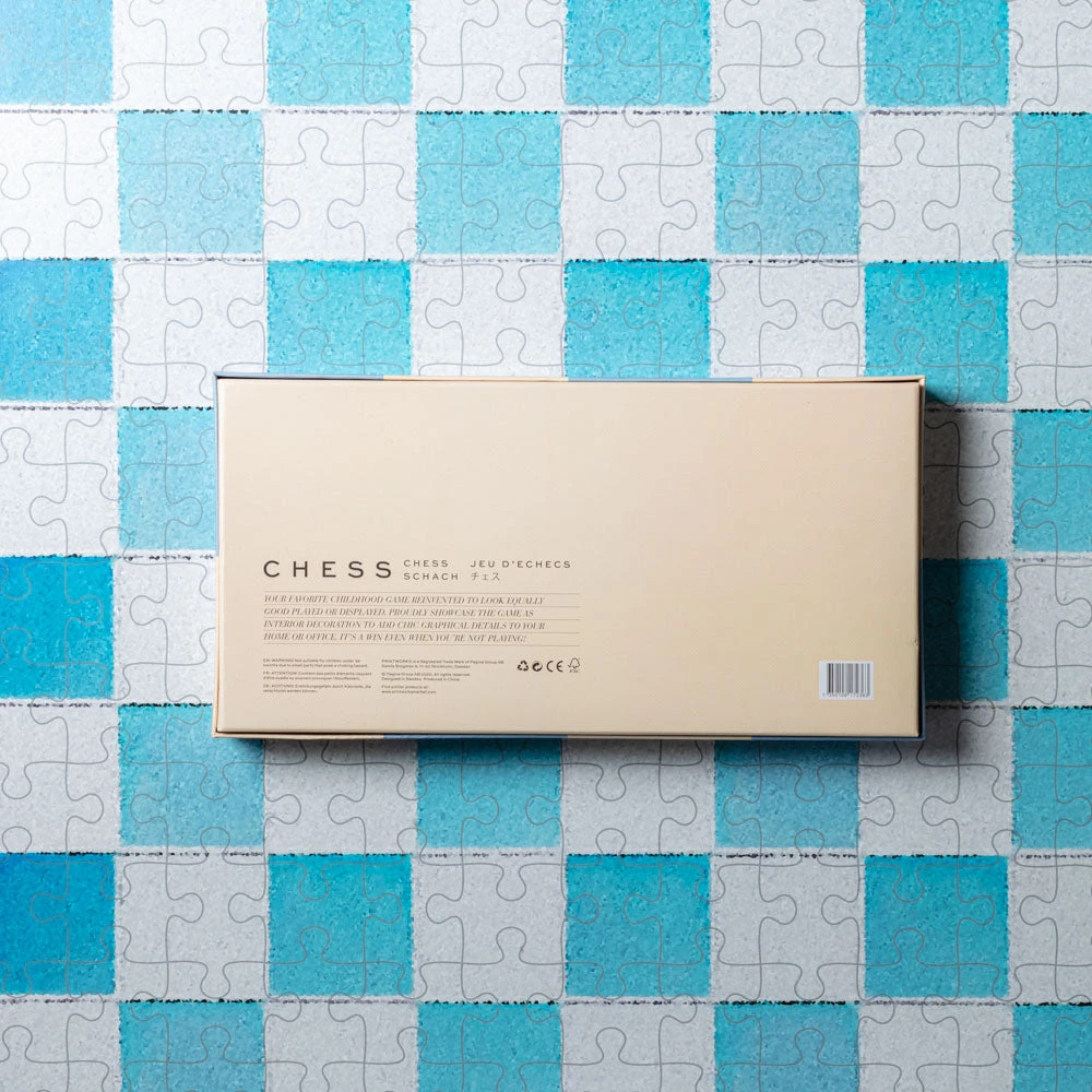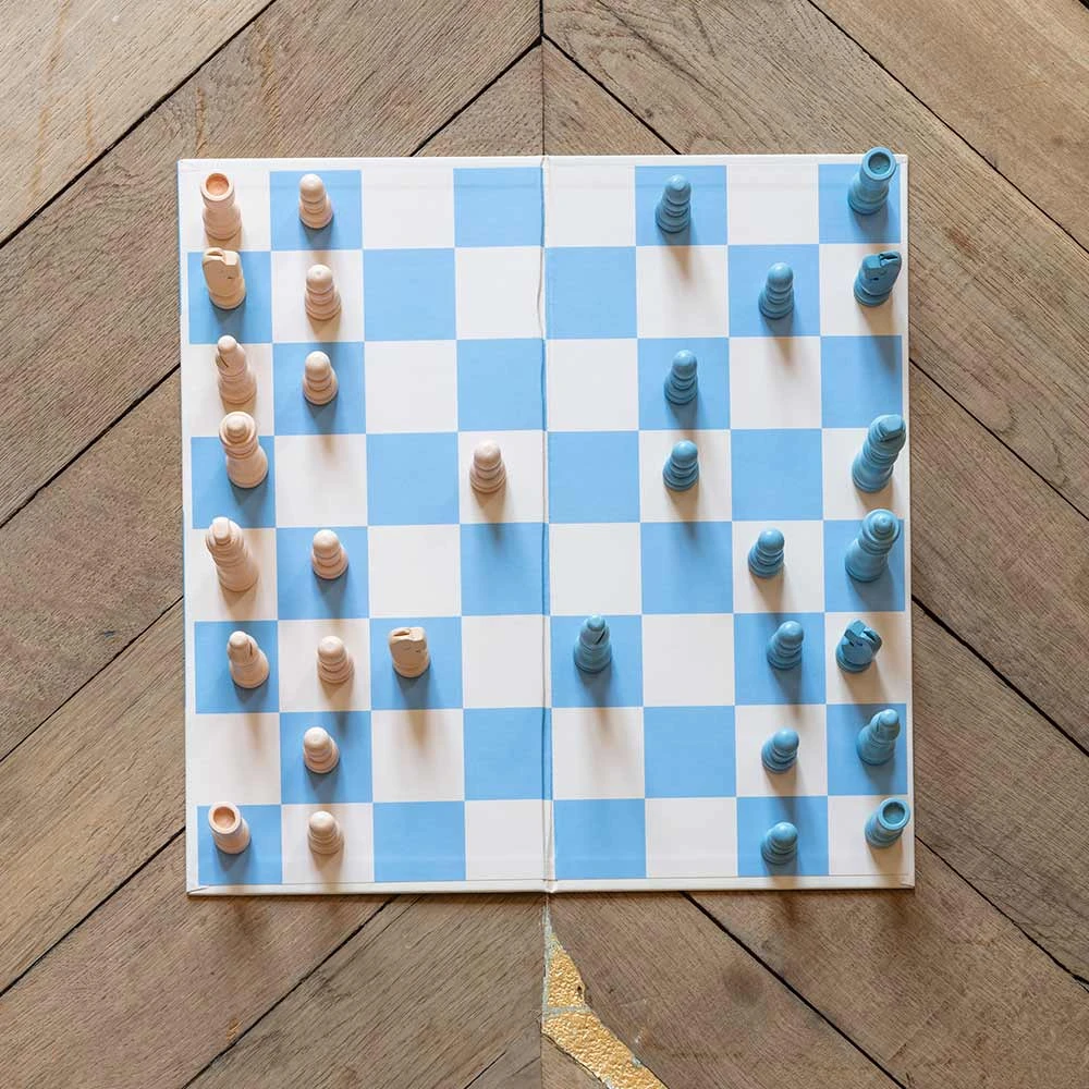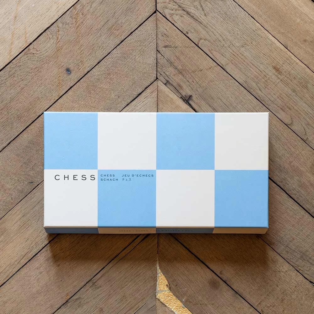 - Jeu d’échecs bleu et blanc avec instructions faciles à lire en anglais, français et allemand