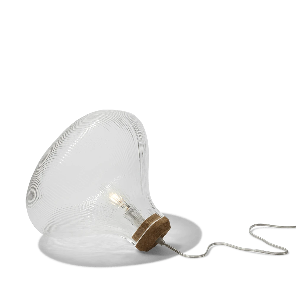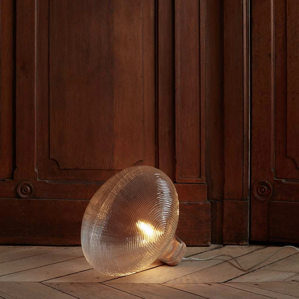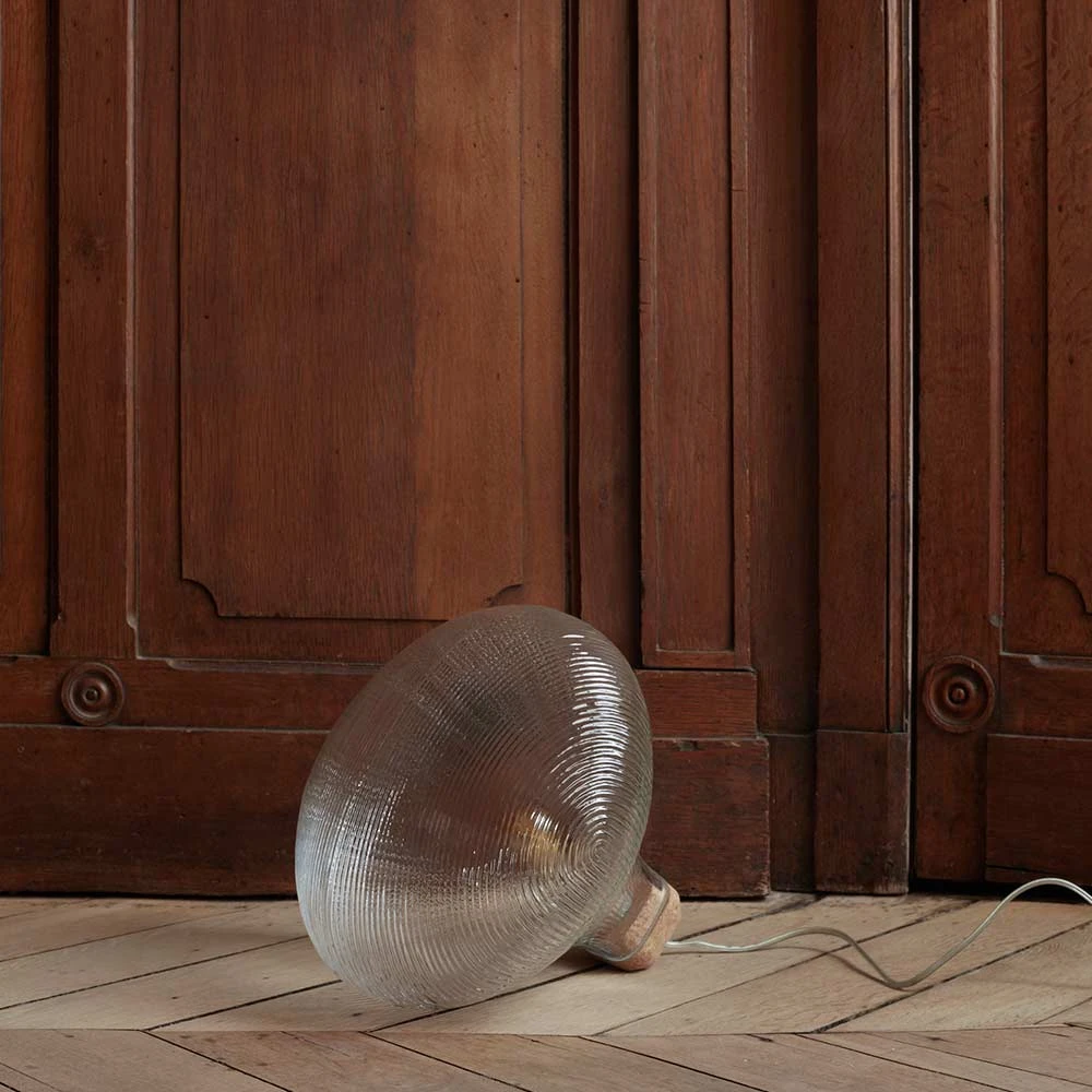- Texturé, son globe en verre diffuse une lumière d’ambiance douce et chaleureuse ; épais, il permet de poser la lampe au sol ou sur un meuble sans risque