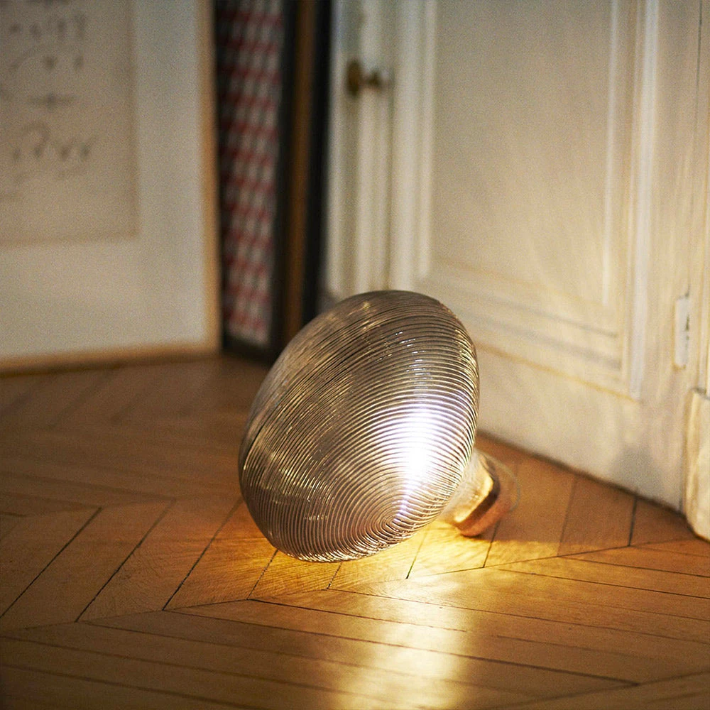 - Soufflé à la bouche dans un moule, Tidelight est un luminaire de série, où chaque lampe conserve sa singularité