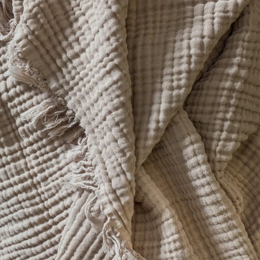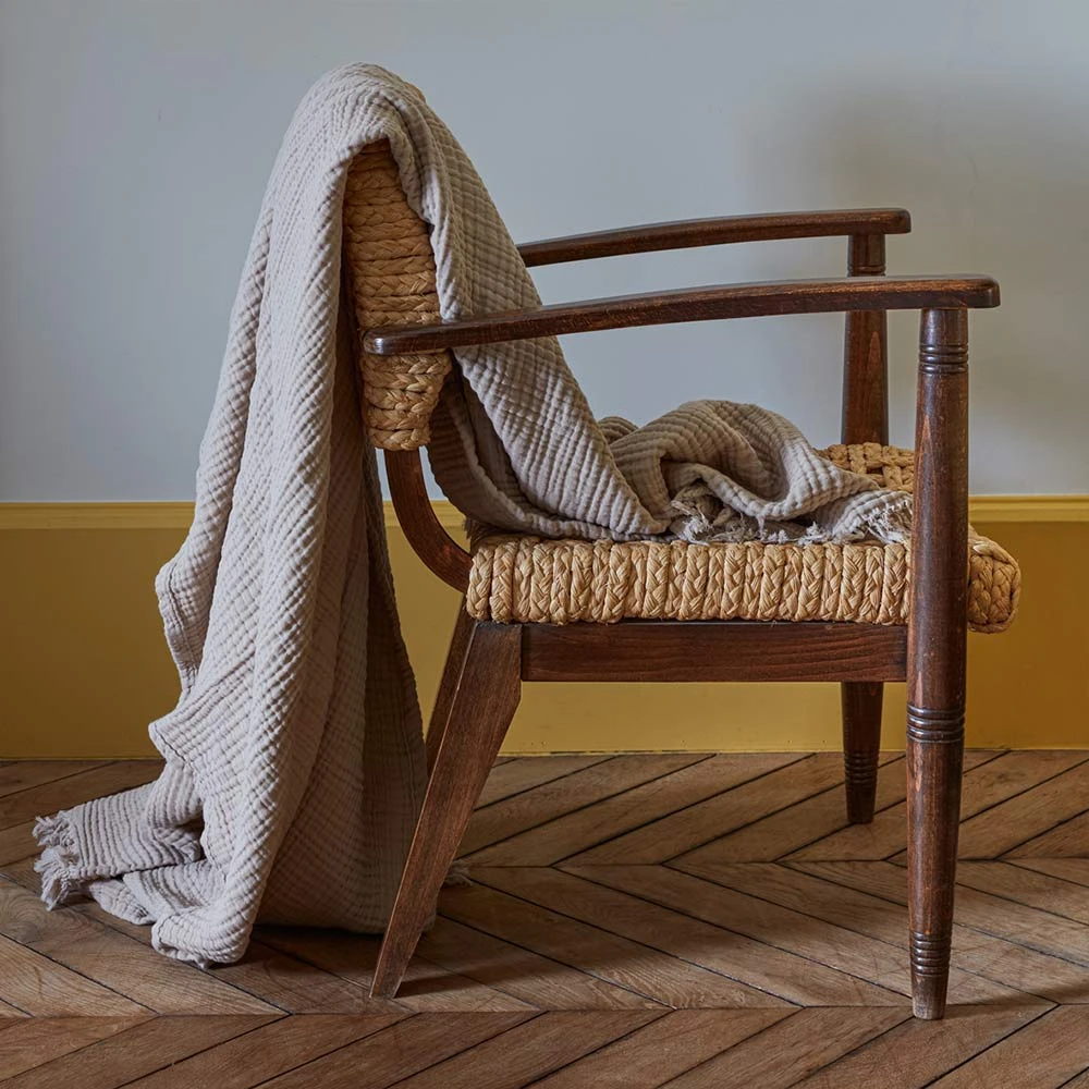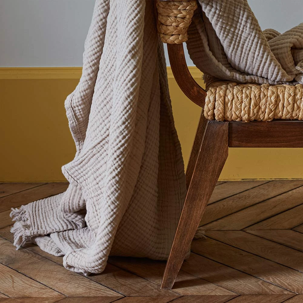 - Plaid en triple gaze de coton, d’une douceur sans pareille pour un maximum de confort