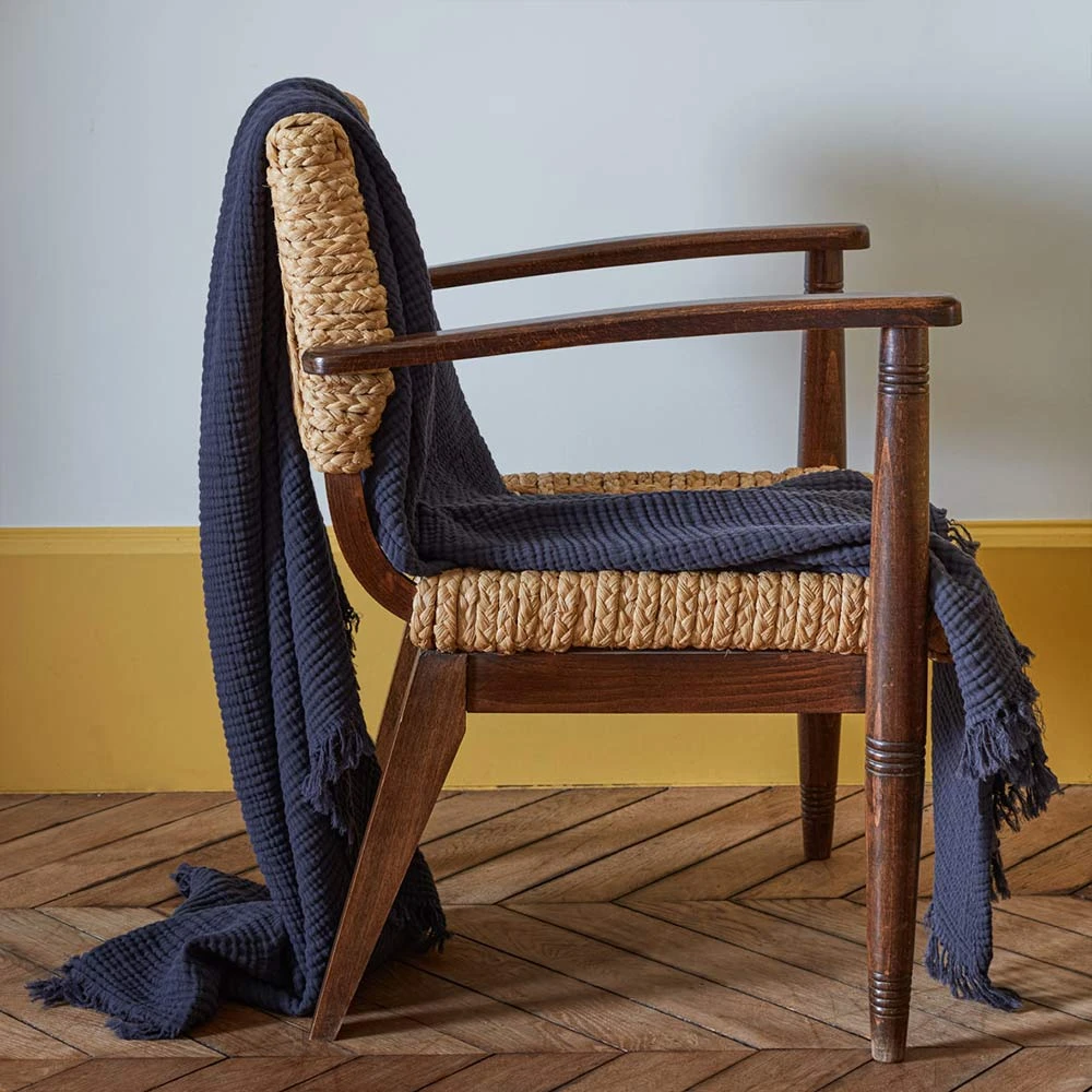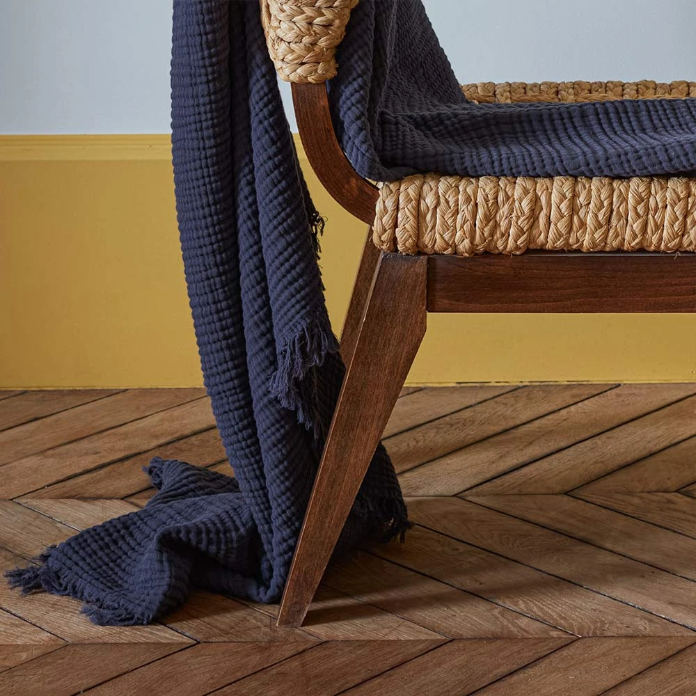 - Plaid en triple gaze de coton, d’une douceur sans pareille pour un maximum de confort