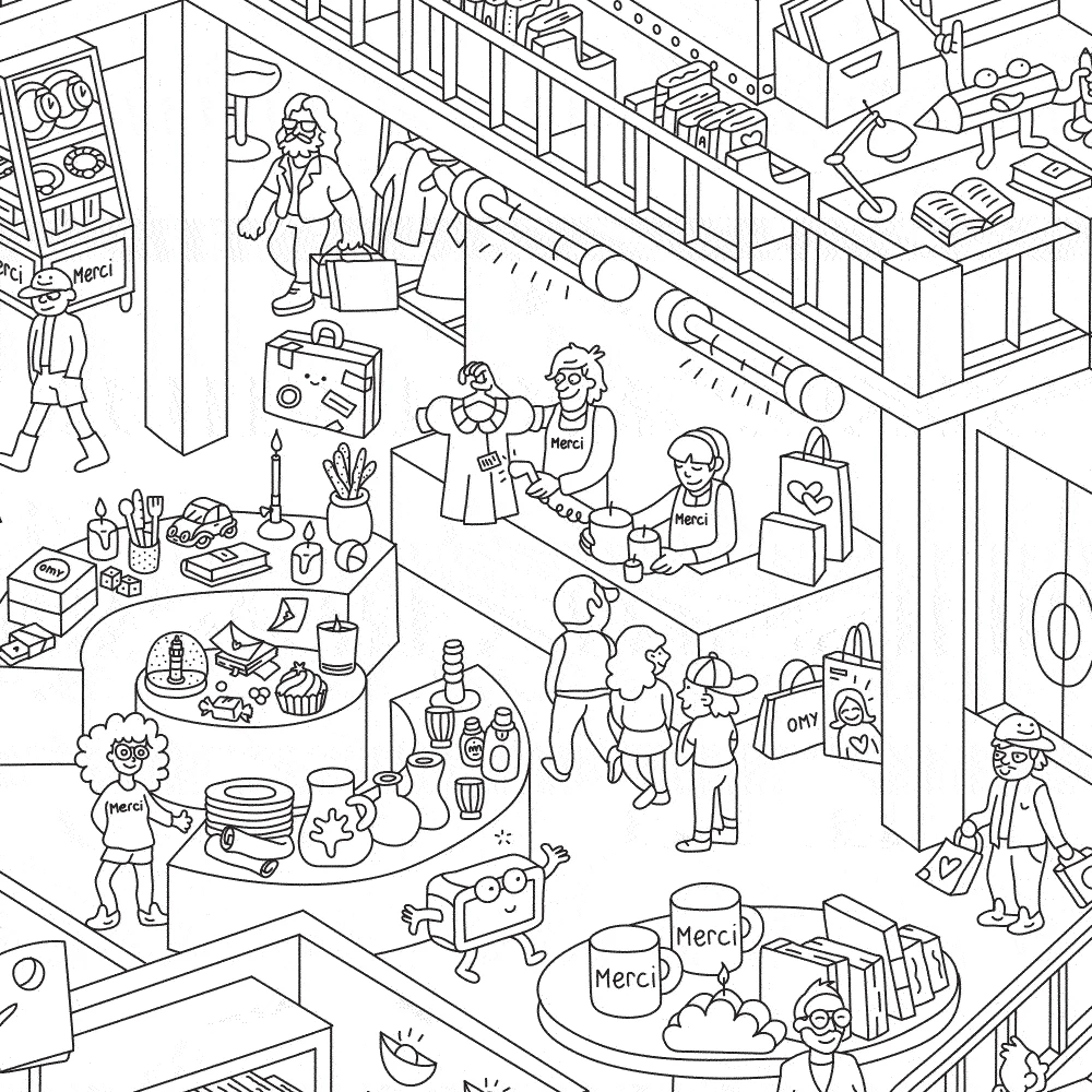 - Conçu pour être accueillant, autour de la convivialité et du plaisir, plus qu’un magasin, Merci est un lieu de vie