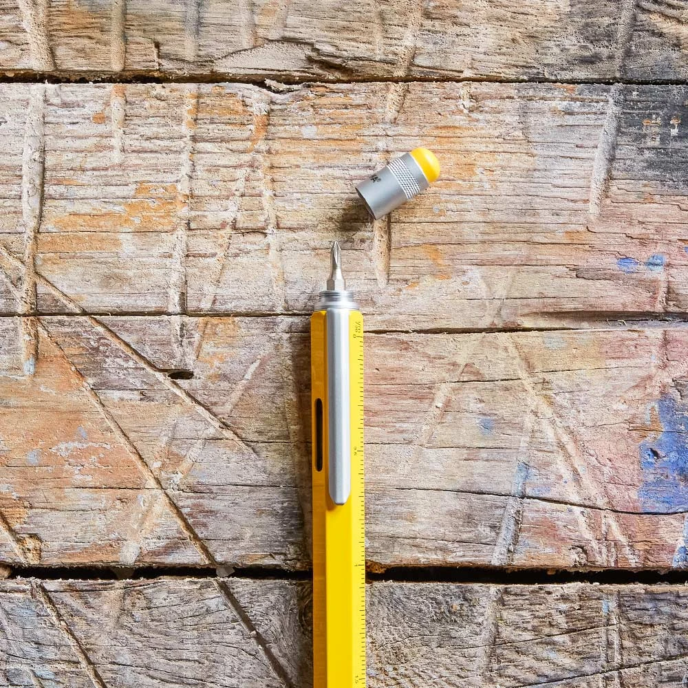 - Ce stylo est un mini outil de planification et mallette à outils en un – avec différentes échelles, règle en centimètres et en pouces, tournevis plat / cruciforme, stylet
