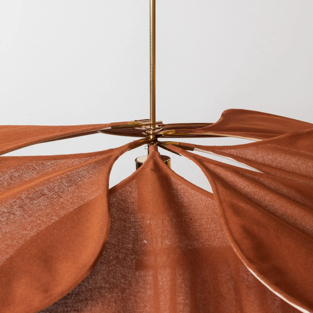 - Pour obtenir ce résultat subtil et aérien, il aura fallu associer laiton, rotin et tissu pour donner forme à cette suspension florale, réminiscente des pétales de fleurs