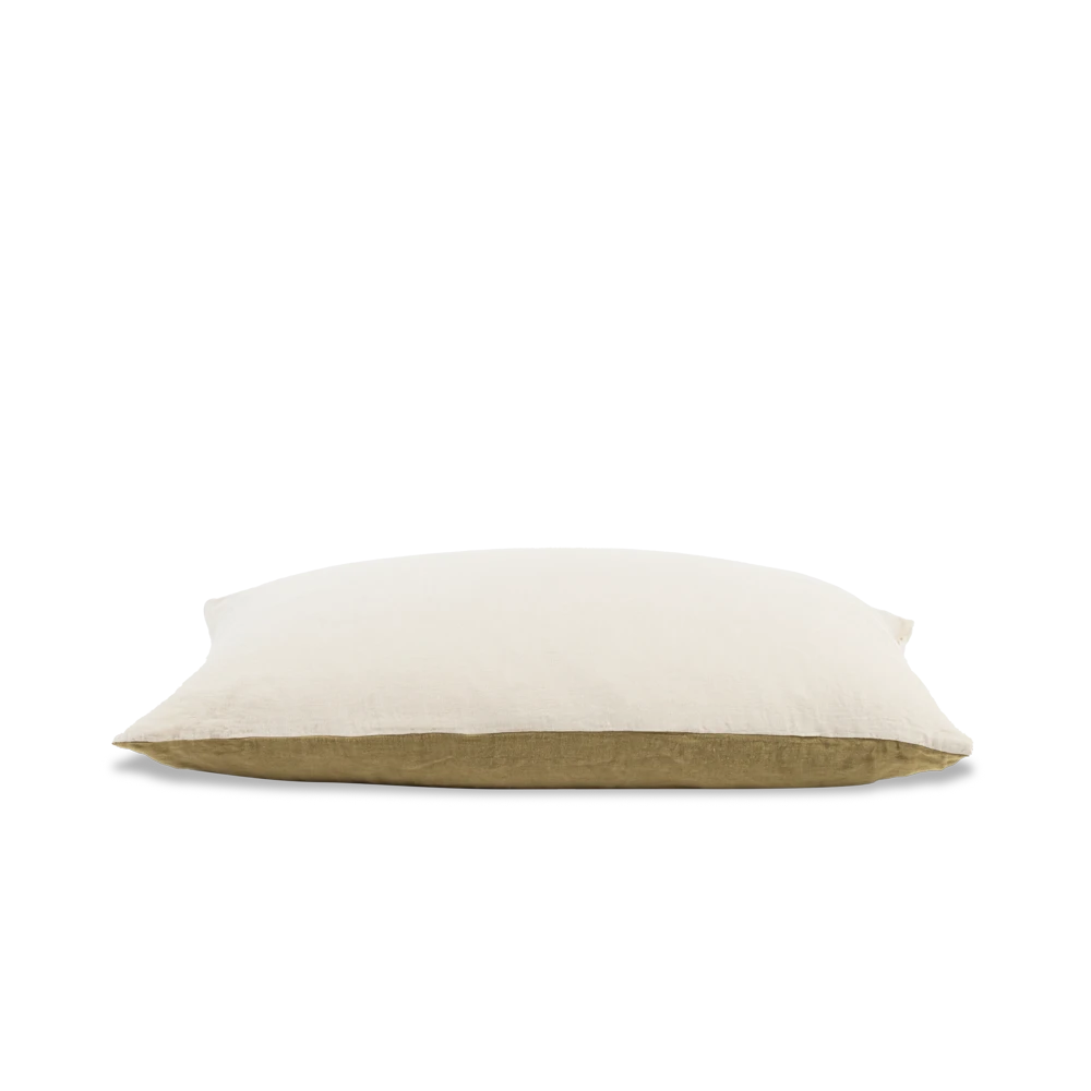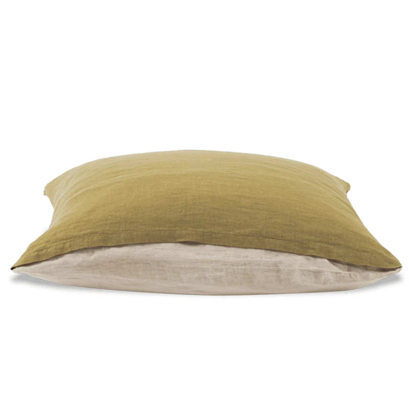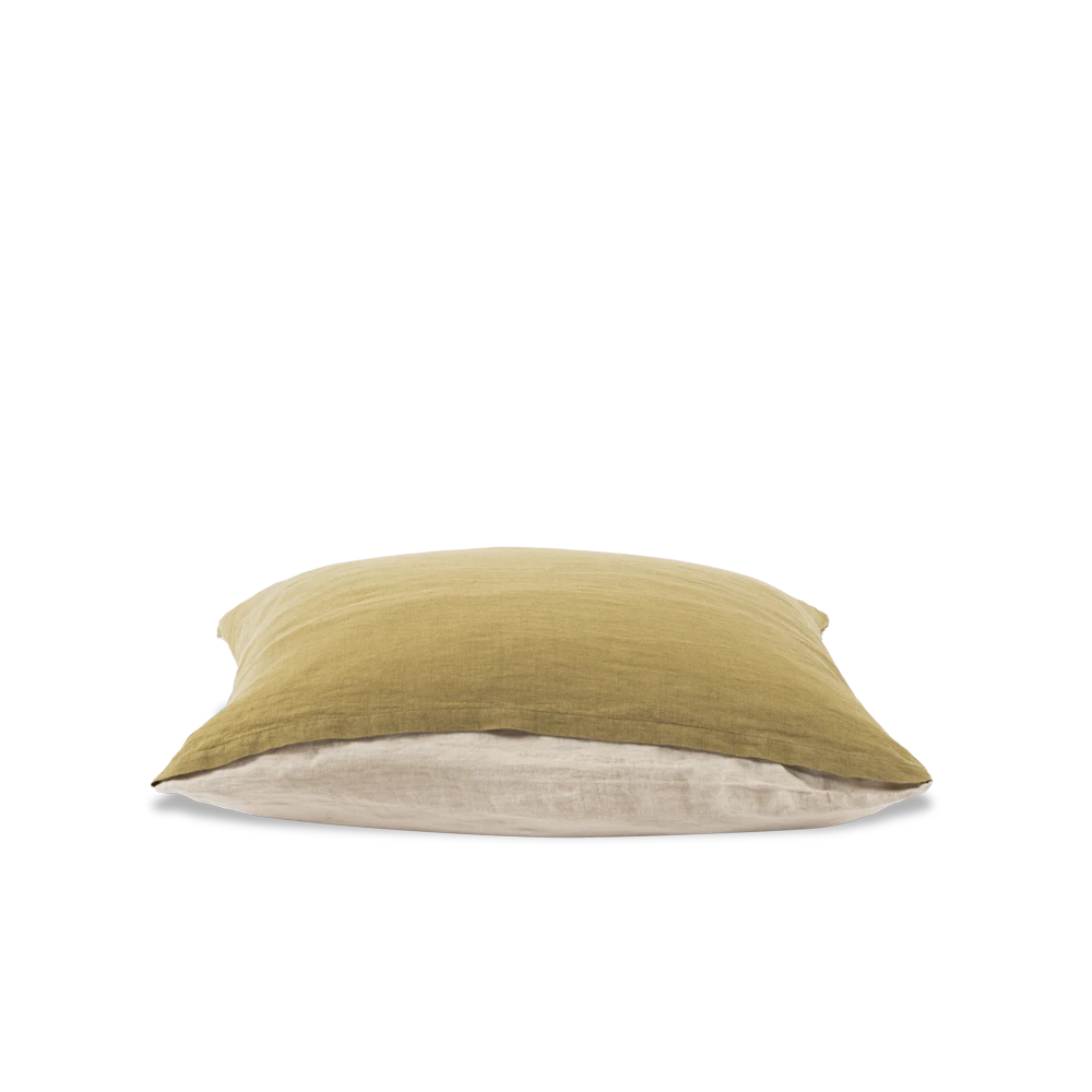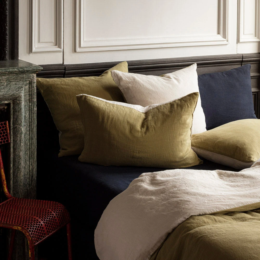 Taie D’oreiller En Lin Lavé – Bicolore Pierre & Vert