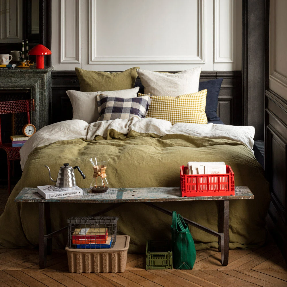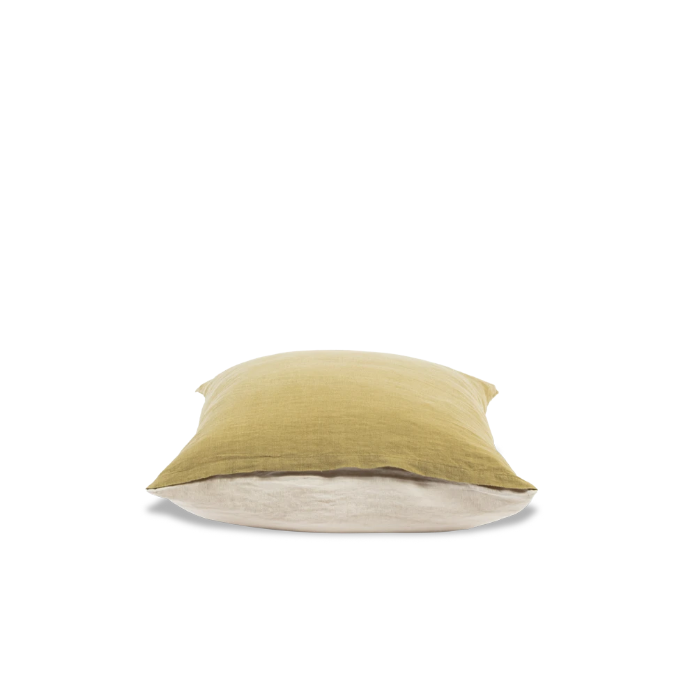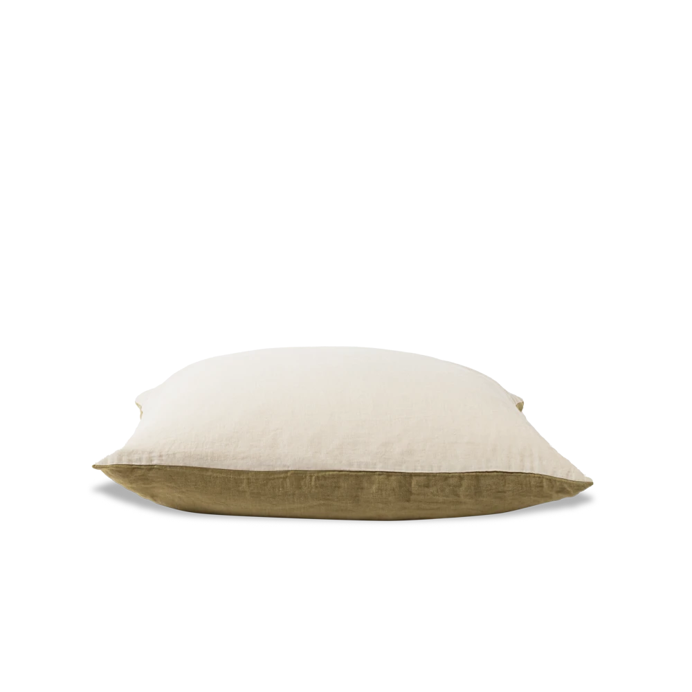 Taie D’oreiller En Lin Lavé – Bicolore Pierre & Vert